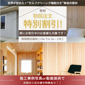 >>外壁材 / 壁材天井材《初回限定》特別割引キャンペーンページはこちら
